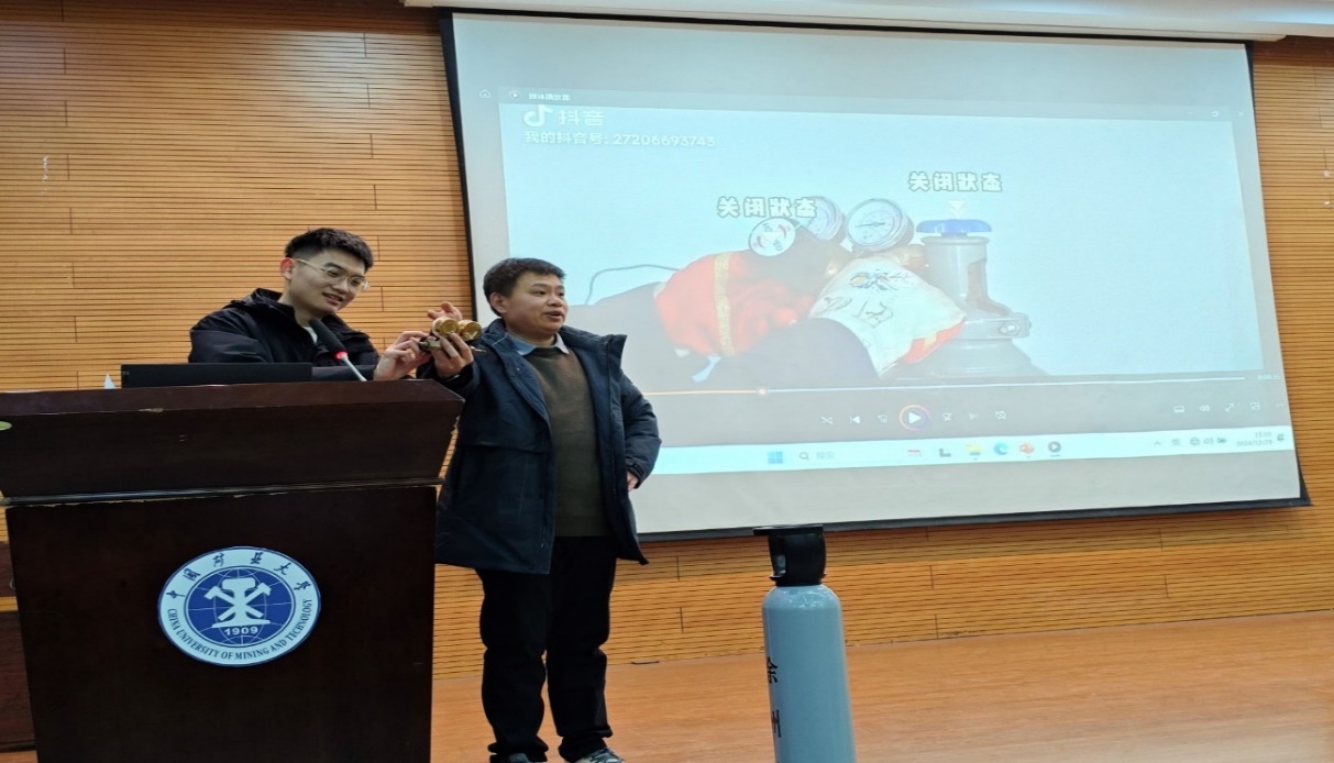 “气体和气瓶使用”特色单元的实操环节由化工学院和江苏华中气体有限公司共同设计并实施。江苏华中气体有限公司洪峰经理授课并指导实操,剖析了气体使用过程中的潜在安全因素,引用事故案例,培训讲解透彻,发人深思。实操环节分组进行,指导老师讲解了大家在气瓶操作中存在的认知盲点,学生们轮流到实验室和气瓶室,亲手体验气体和气瓶的相关操作,如减压器使用、释放人体静电、徒手运送气瓶、三种检漏操作、气瓶二维码扫读、液氮法速冻等环节。同学们表示本次学习改变了以前看见气瓶就畏惧的心态,填补了对于气瓶操作底气不足的空缺。