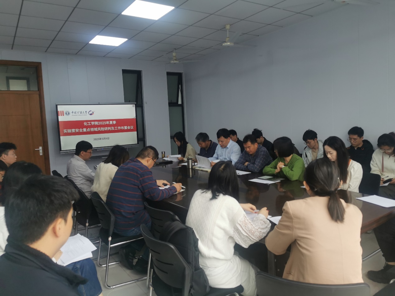 5月9日上午,化工学院在A406-1召开2025年夏季实验室安全重点领域风险研判会暨实验室安全工作推进会。学院二十三个安全管控重点实验室的师生及实验中心部分老师参加了此次会议。会议由王启立副院长主持。